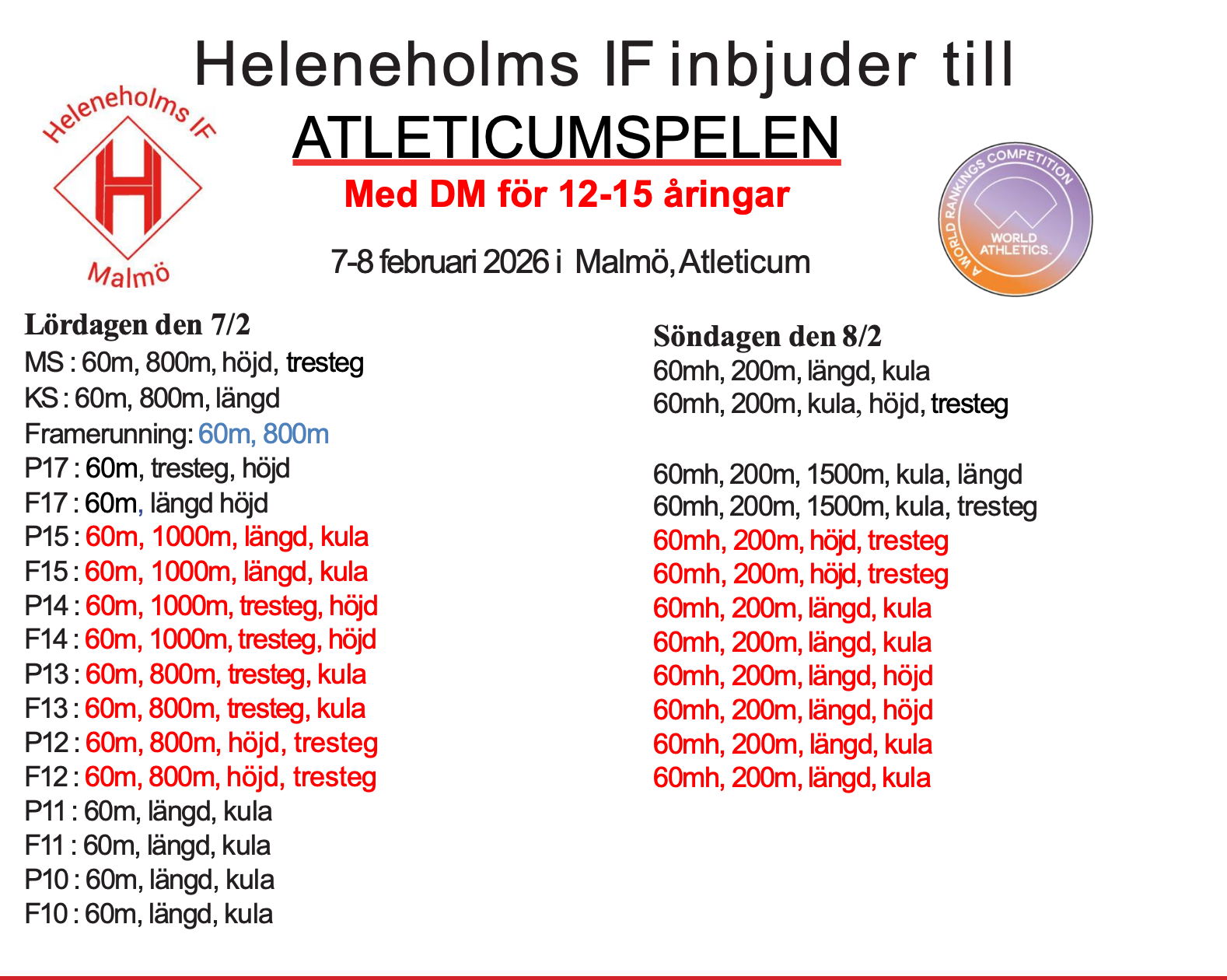 Hvidovre Indoor 2026 (tilmeldingsfrist d.3/1, 31/1,1/3)